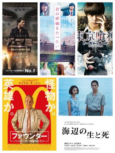 『ザ・マミー 呪われた砂漠の王女』 『君の膵臓をたべたい』『ファウンダー ハンバーガー帝国のヒミツ』『東京喰種 トーキョーグール』『海辺の生と死』